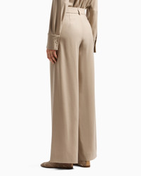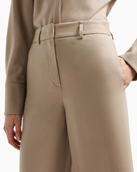 Relaxed-fit, straight-cut trousers made from luxurious, flowing wool. The clean-lined style features a waistband with belt loops, zip closure and two side welt pockets. A versatile piece to pair with various collection items in timeless daywear looks. Wide waistband with belt loops Faced placket with zip closure Side welt pockets Unlined Made in Italy Product Code: GW000621TE13592U8048