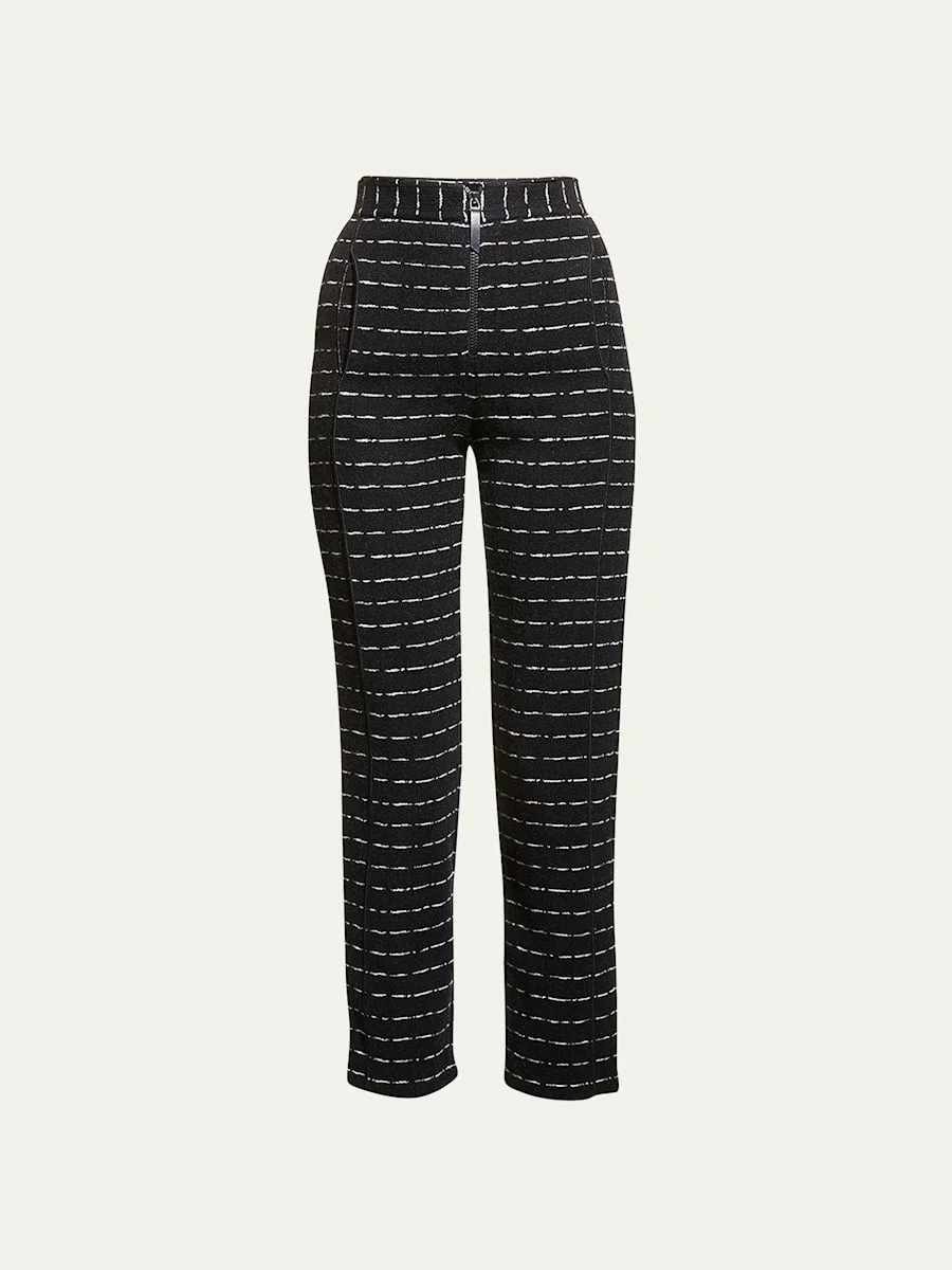 Giorgio Armani pants in striped jersey jacquard Mid rise sits high on hip Flat front Side split pockets Straight legs Ankle length Zip front Linen/cotton/virgin wool Dry clean Made in Italy Model is 5'10"/177cm. Online Inquiries: BGS21_B77F2| Store Inquiries: #4318789
