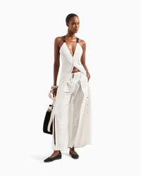 Relaxed-fit trousers in hemp jersey with a drawstring waist with draped, light volumes. The style has a full-length front panel to add movement and elegantly completes beach looks when teamed with cotton and linen shirts or blouses with a holiday attitude. Drawstring waist Full-length front panel Two side pockets Unlined Made in Italy Product Code: GW001196AF15968U0002