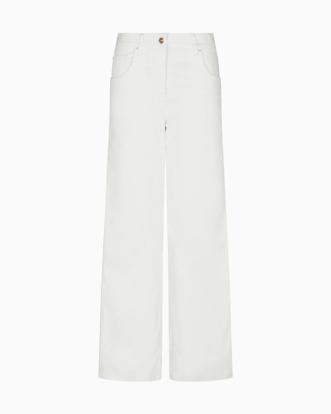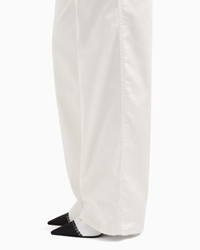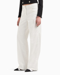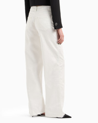 Stone-washed wide-leg trousers with a nonchalant, versatile silhouette. Featuring a waistband with belt loops, rounded pockets and patch pockets on the back, it’s perfect for completing effortless daytime looks.<br>The garment is part of the Holiday selection, which plays with a minimalist colour palette of black and white, colours that have always been a symbol of sophistication. A colour choice found in the fabrics, embroideries and accessories that express the essence of Armani spirit, distinguished by clean, androgynous-inspired lines, that are still always feminine and sensual. Waistband with belt loops Button and zip closure Two rounded front pockets Two back patch pockets Unlined Made in Italy Product Code: GW001773AF20111U0002