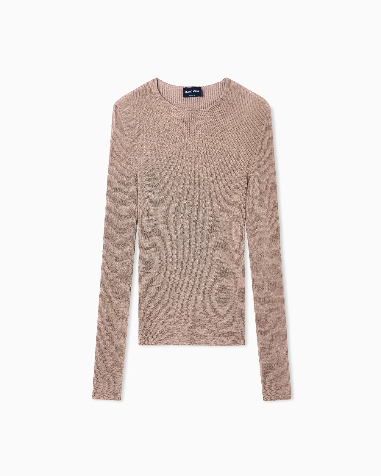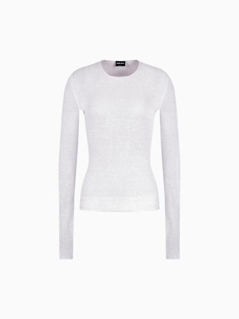 Minimalist, clean lines for this cosy jumper made from a stretch viscose blend, available in the collection colour palette. The round-neck, long-sleeved style features a vertical ruffle motif that creates a slightly three-dimensional effect. A versatile, ideal complement to many looks. Fineness: 18 Rounded neckline Long sleeves Vertical ruffle construction Made in Italy Product Code: GW001205AF15655U6071