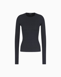 Minimalist, clean lines for this cosy jumper made from a stretch viscose blend, available in the collection colour palette. The round-neck, long-sleeved style features a vertical ruffle motif that creates a slightly three-dimensional effect. A versatile, ideal complement to many looks. Fineness: 18 Rounded neckline Long sleeves Vertical ruffle construction Made in Italy Product Code: GW001205AF15655U8113