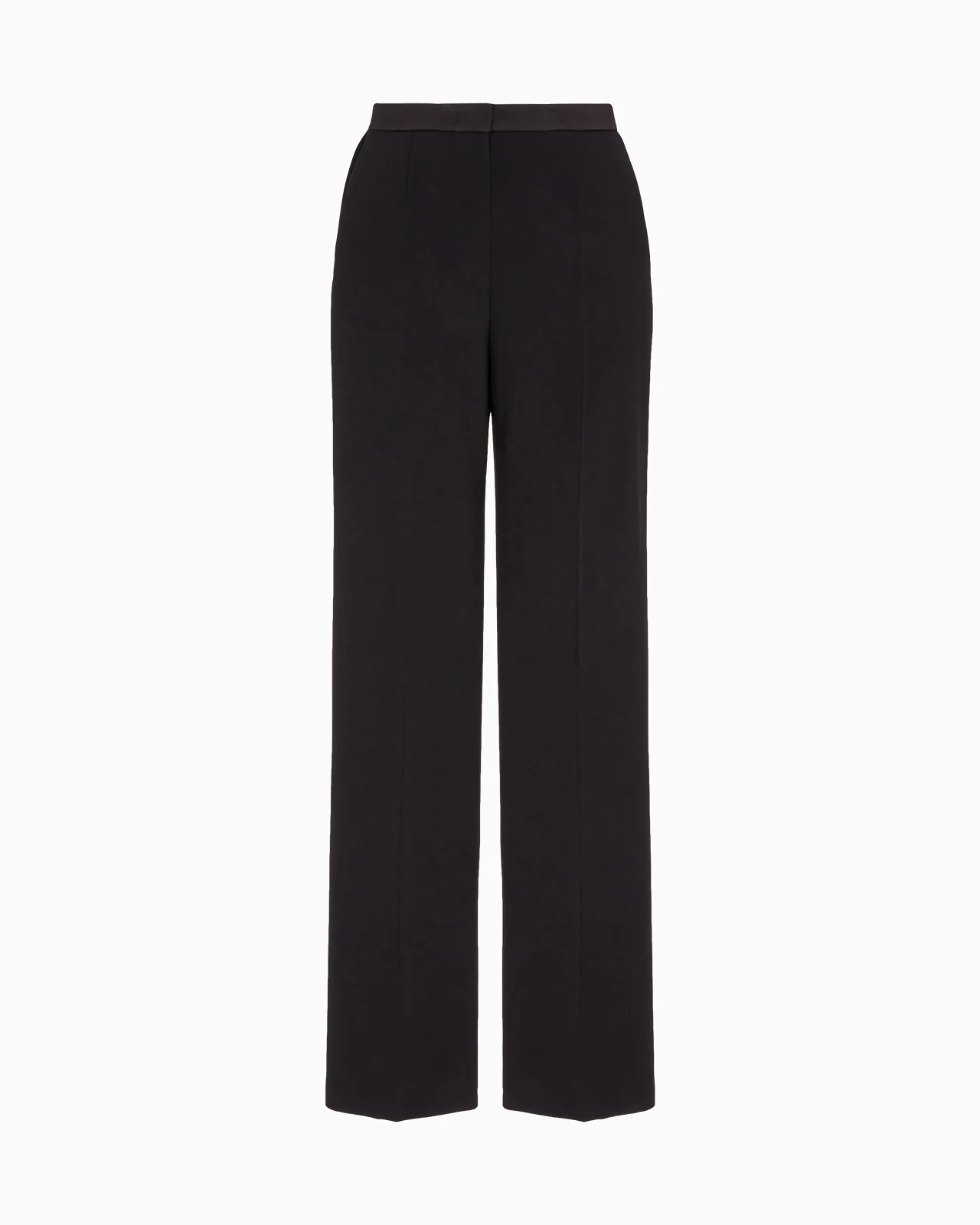 Classic, evergreen trousers made from viscose cady. This elegant style is perfect in refined, sophisticated evening looks when worn with a silk shirt and court shoes. Product Code: 2SHPP0MWT03C91PZ01 Details Composition 94% Viscose 6% Elastane Thin waistband with satin details Zip closure concealed under a placket Two side welt pockets Pressed crease Smooth back Cuff width: 28 cm Made in Italy
