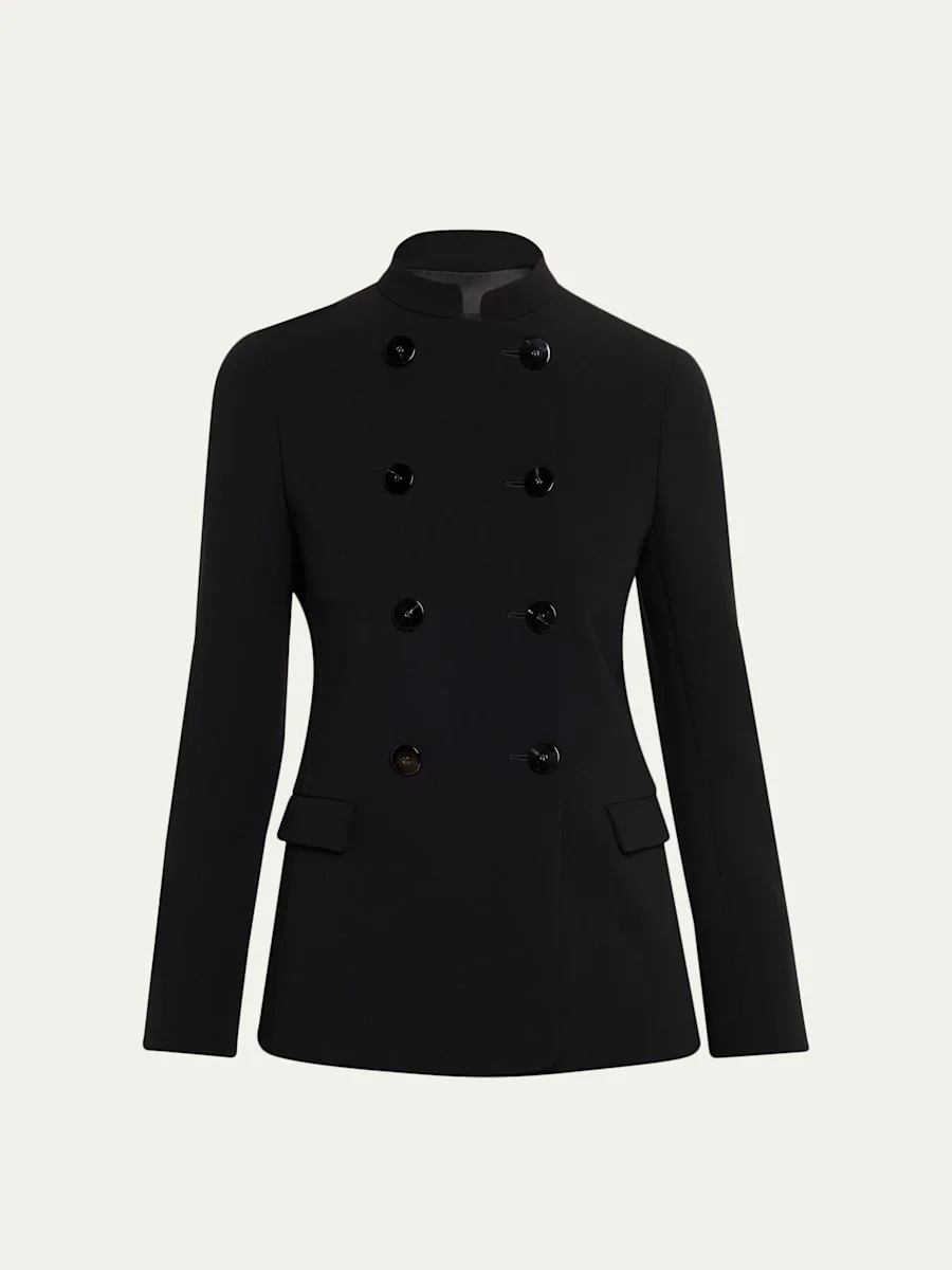 Stretch Wool Crepe Double-Breasted Blazer