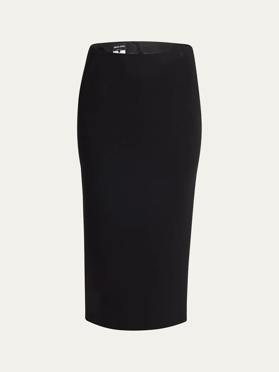Giorgio Armani stretch-wool midi skirt with front pockets High rise Pencil style Hem falls below the knee Center back zip Virgin wool/elastane Dry clean Made in Italy Online Inquiries: BGS21_BA4Y3| Store Inquiries: #5037461