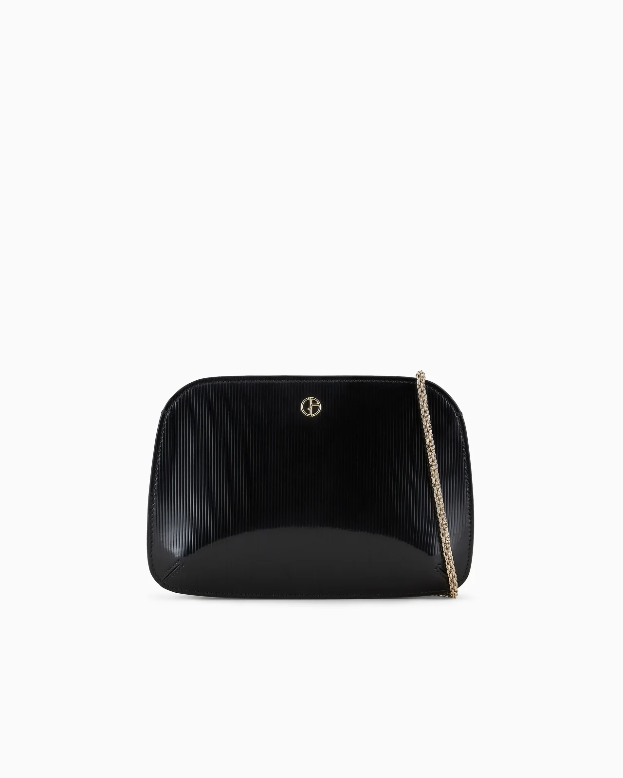 La Prima clutch bag made from lustrous lame leather with embossed stripes. Its practical, detachable, bejewelled shoulder chain adds a luxurious touch to evening looks and personality to daytime outfits. Product Code: Y1C097YQZ6A180001 Details Composition 100% Calf-skin leather Detachable bejewelled shoulder strap Gold-plated metal GA logo Magnetic buttoned closure Smooth leather card holder Lipstick holder and pocket with logo mirror Dimensions: 21 x 15 x 4 cm Made in Italy