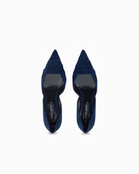 Sophisticated court shoes, made of suede, distinguished by a special technique that enhances the softness of the leather. A sophisticated construction that wraps around the foot simulating the folds of a foulard, completed by a deep topline. A true representative of great Armani style, perfect for day or evening. Pointed toes Scooped top line Covered stiletto heel Heel height: 7 cm Made in Italy Product Code: GW001909AF19746UB099