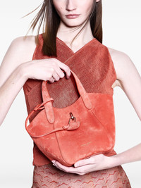suede tote bag Highlights - Orange - Lobster claw fastening - Two flat top handles - Removable pouch - Gold-tone hardware Made in Italy Composition Lining: Calf Leather 100% Outer: Calf Leather 100% SIZE & FIT Measurement DEPTH 9.44 in(24 cm) HEIGHT 17.32 in(44 cm) WIDTH 12.59 in(32 cm)