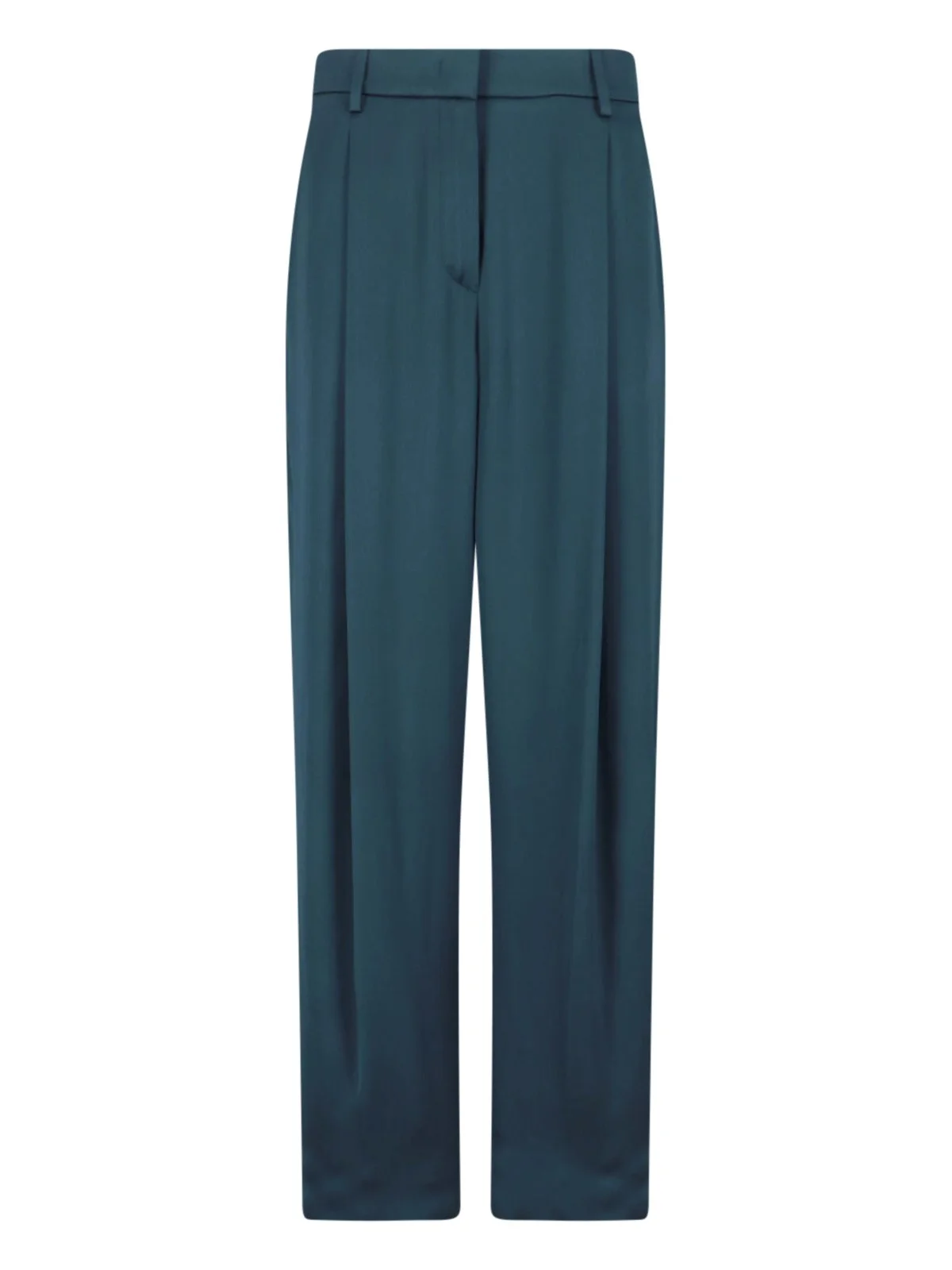 GIORGIO ARMANI TAILORED PANTS IN GREEN SILK WITH MID WAIST, METAL ZIP AND HOOK CLOSURE, BELT LOOPS, TWO SLANTED SIDE POCKETS, TWO BACK WELT POCKETS, FRONT PUNCHES, STRAIGHT HEM. PRODUCT INFO PRODUCT CODE GW002793 TE10101U7331 COMPOSITION: 100% SILK SIZE AND FIT: REGULAR FIT MADE IN: ITALY