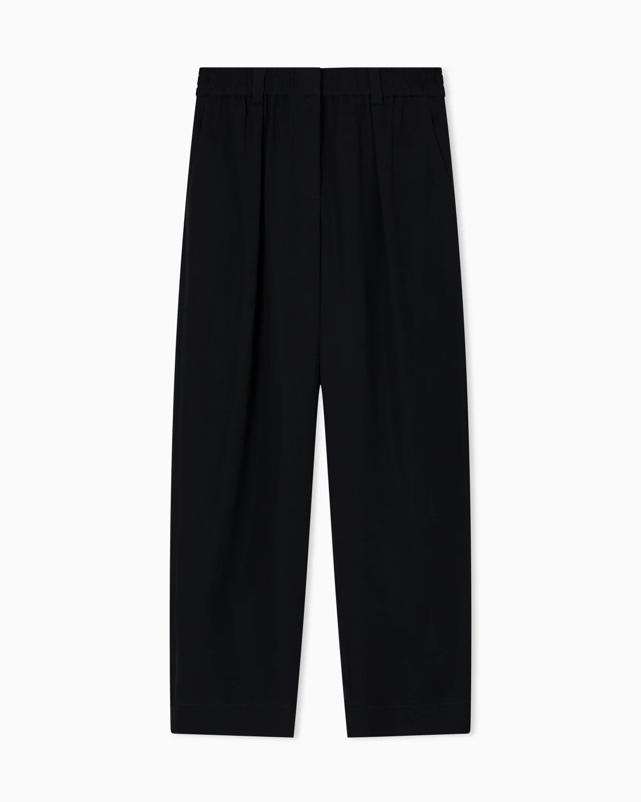 Straight trousers made of technical cady, a fabric that maintains its firmness, ensuring clean cuts during laser cutting. Over time, it has become one of the brand’s iconic fabrics, and is perfect for giving pieces a modern yet athletic twist. Featuring stitched turn-up, side pockets, and a comfortable elasticated waistband with loops, the style elegantly completes daytime looks with a laid-back feel. Straight trousers Elasticated waistband with loops Button and zip closure Two side pockets Two back welt pockets Unlined Made in Italy Product Code: GW001567TE10832UC001