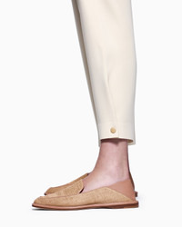 Straight trousers made from technical cady that feel cosy and silky. The design with an essential construction, elasticated waistband, hook and zip closure and side pockets, is embellished with a small button detail at the hem. A fresh and versatile offering for a casual look. Smooth waistband Concealed zip-and-hook closure Two slant pockets Two back patch pockets Button detail at the ankle cuff Unlined Made in Italy Product Code: GW000768TE10832U1115