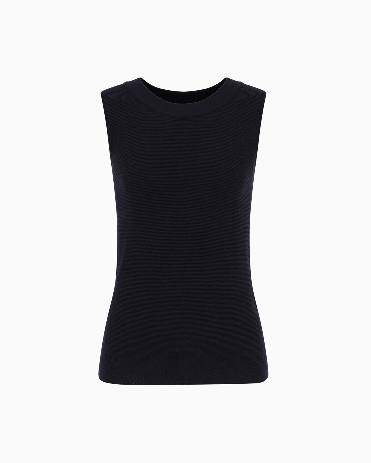 A minimalist piece in true Giorgio Armani style. Simple yet sophisticated, this top is defined by its unique, slim and fluid silhouette and is made from an ottoman fabric. Product Code: 8NAH30AM05Z10922 Details Composition 67% Viscose 33% Polyester Crew neck Sleeveless Ottoman knit Made in Italy Fitting The model is 178 cm tall and is wearing size 38/S