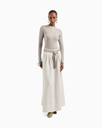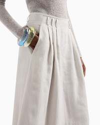 Long skirt made of linen, distinguished by the pleat motif on the front. It adds a laid-back allure to daytime looks when worn with the collection’s shirts and jumpers. Waistband with belt loops Two in-seam side pockets Side zip closure Unlined Length: 105 cm from the waist Made in Italy Product Code: GW000869TE11126U8003