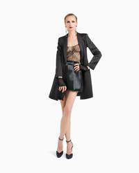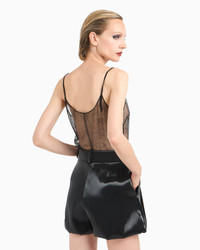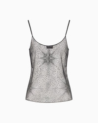 Subtle and sophisticated sensuality defines this tulle top with clean, minimalist lines. A shower of sparkling black rhinestones creates a star motif to adorn the lines, a repeated theme in this sparkling selection entirely dedicated to the evening.<br>The piece is part of the exclusive collection that celebrates the connection between Giorgio Armani and the world of Hollywood. A colour palette of deep blues combines with a profound and ever-elegant black, to create a sparkling, luxurious selection inspired by the limelight and most exclusive Hollywood parties. Extremely sophisticated pieces with iconic lines are made of velvets, silks and satins enlivened by crystal and rhinestone embellishments and refined workmanship. Looks for him and her, designed for evenings and special occasions. Thin shoulder straps with heat-adhesive black rhinestones Rounded neckline Star motif embroidery made of black heat-adhesive rhinestones Piping with black heat-adhesive rhinestones Concealed zip fastening on the side Unlined Made in Italy Product Code: GW001491AF17836ZZ017