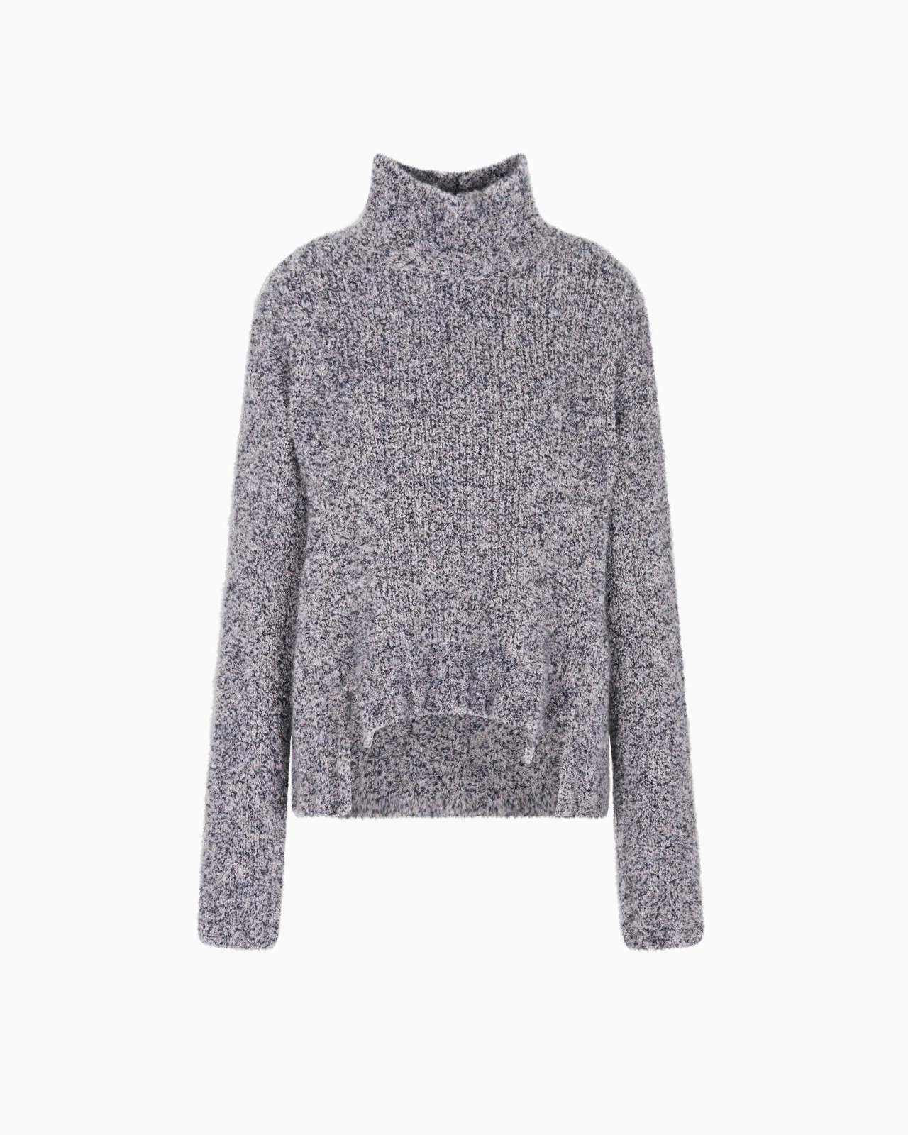 MOCK-NECK JUMPER IN BOUCLÉ CASHMERE, AND SILK