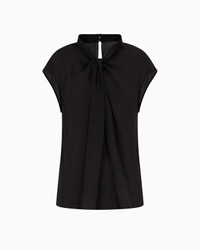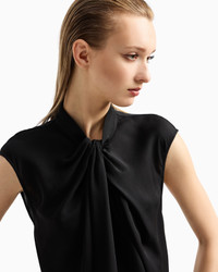 Essential and minimalist, this crew-neck blouse in washed silk double georgette is the perfect complement to effortless looks. Defined by short cap sleeves and a knot detail with a draped front, it comes in the signature colours of this part of the collection. Upright collar Cap sleeves Front draping with knot Back teardrop opening Closure with small buttons on the back Made in Italy Product Code: GW001107TE14025UC001