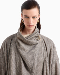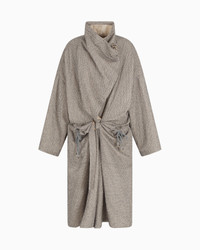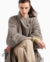 Relaxed volumes, draped lines and effortless style for a distinctive coat crafted from a cotton blend jersey. This style enlivened by a pique weave, features an upright collar with a side closure, drawstring pockets and a belted waist with a gold-tone metal buckle. A special piece, truly representative of the collection’s sophisticated spirit. Upright collar with side closure Strap closure with metal buckle Dropped shoulders Loose-fitting sleeves Two front drawstring pockets Length: 113 cm Made in Italy Product Code: GW000908AF15058F8055