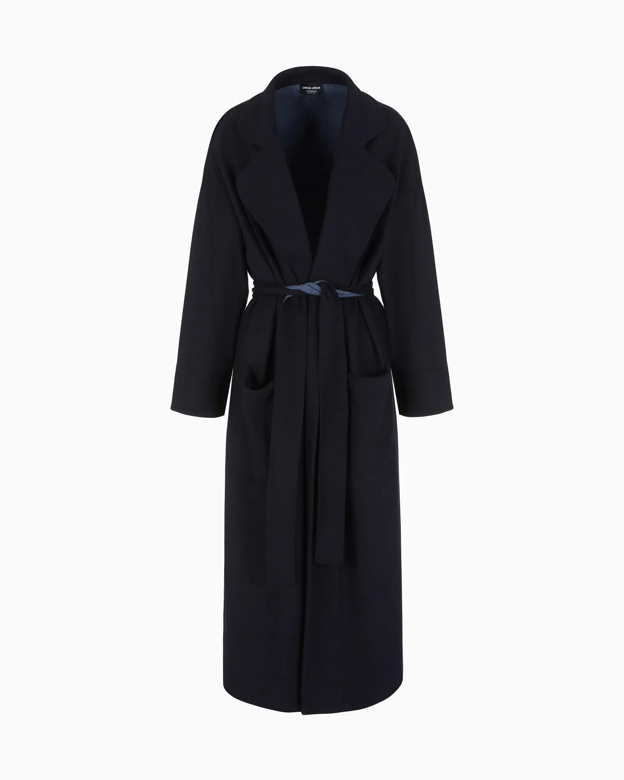 Made from double-faced cashmere, this two-toned long coat is defined by a belted closure at the waist. It features a collar with notched lapels, two convenient patch pockets and a centre-back slit. An elegant, versatile, warm style that completes a wide array of daytime looks. Product Code: 6LAL50AJRIZ1UBU2 Details Composition 100% Cashmere Belted closure Collar with rounded, notched lapels Two applied patch pockets Back slit Cashmere interior Length: 127 cm Made in Italy