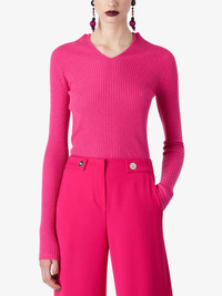 V-neck ribbed jumper Highlights - Fuchsia pink - Cotton - Knitted construction - Ribbed knit - V-neck - Long sleeves - Straight hem Imported Composition Cotton 100%