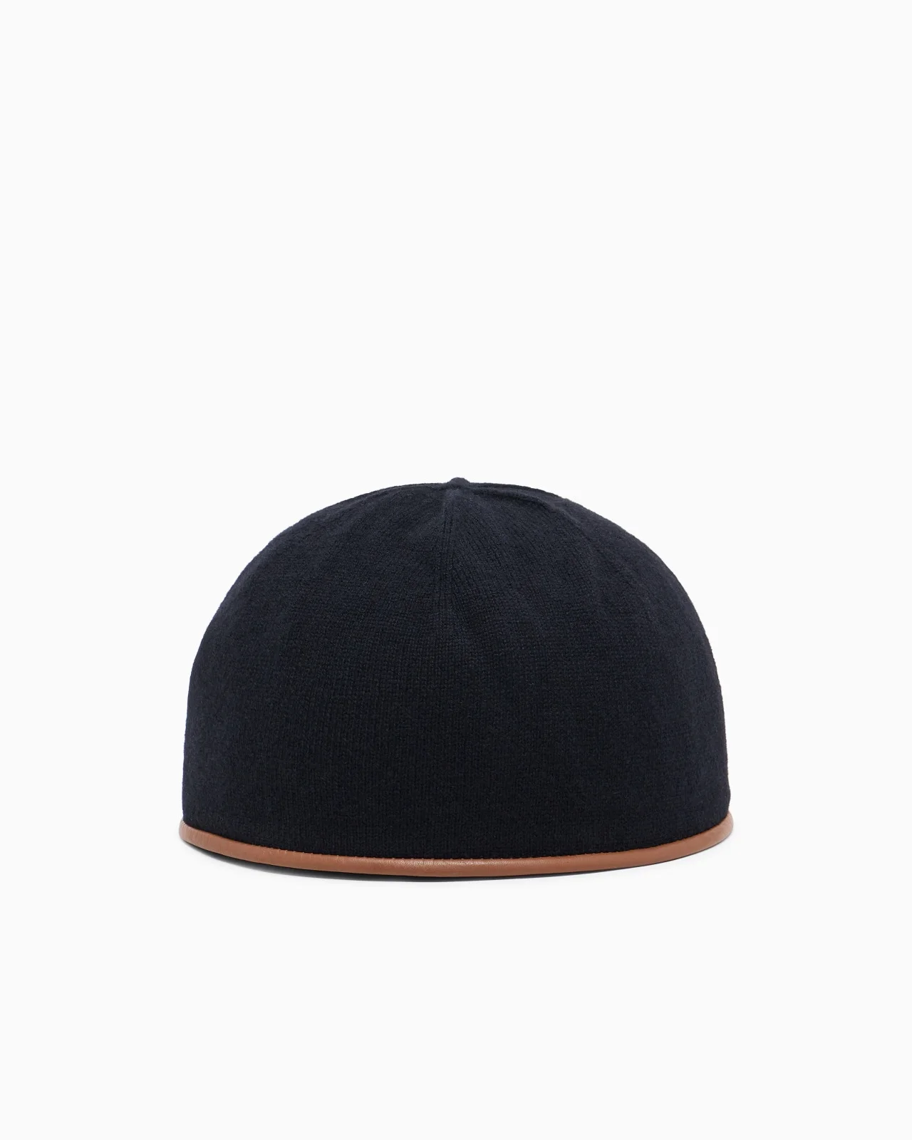 Elegant skullcap hat made of virgin wool cashmere. An essential and refined accessory, embellished with a matching leather trim. Leather trim Made in Italy Product Code: GW002117AF19727UC001