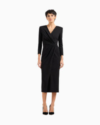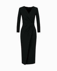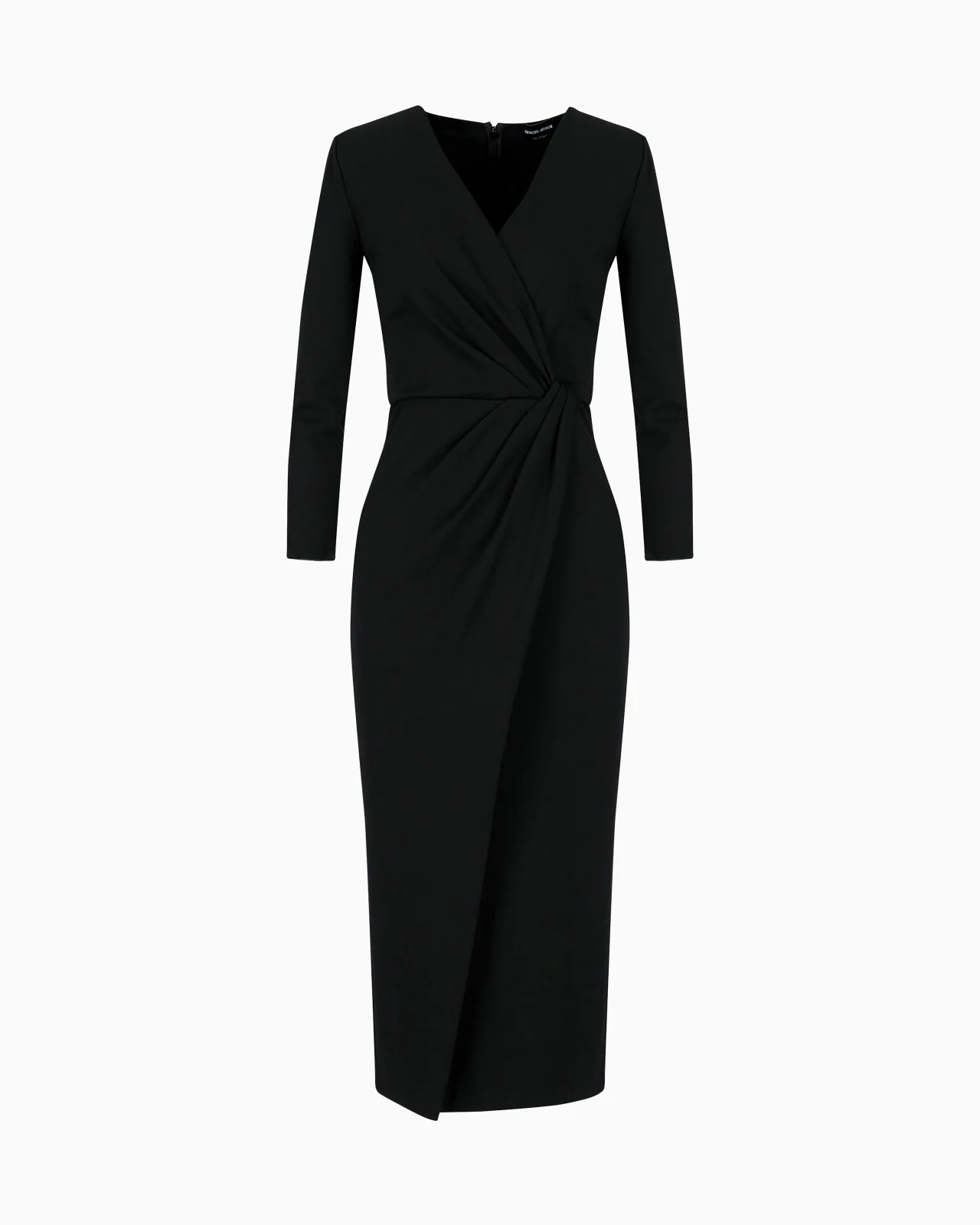 This form-fitting sheath dress is defined by an elegant, refined allure that accentuates and enhances the silhouette. Made from a Milano-stitch stretch-viscose blend,the style is embellished with a pleated motif on the bodice that creates a sensual yet subtle front slit. This sophisticated style can be worn in day or evening looks, simply by changing accessories. Product Code: 3RAA70AJFBZ1UC99 Details Composition 71% Viscose 24% Polyamide 5% Elastane V neck 3/4 sleeves with zip detail Pleated detail on the bodice Front slit Back zip closure Length: 120 cm Made in Italy