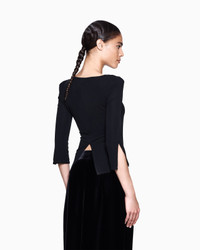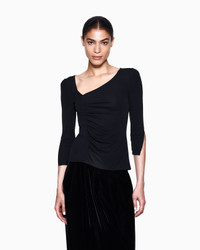 Long-sleeved jumper made from cosy viscose jersey, embellished with an asymmetrical neckline that defines the line. Featuring three-quarter-length sleeves and a flattering side drape, the item is distinguished by its sophisticated style. A versatile, refined offering designed to embellish numerous outfits. Asymmetric top line Three-quarter length sleeves Front draping Back zip closure Made in Italy Product Code: GW002155AF19844UC001