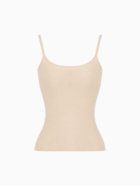 Top with essential lines made of viscose ottoman that is cosy and comfortable to the touch. A slim-fitting item perfect for wearing under jackets or paired with collection’s skirts and trousers. Form-fitting cut Thin shoulder straps Rounded neckline Made in Italy Product Code: 8NAH01AM05ZU3010