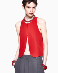 Washed silk crepe waistcoat, featuring a practical double-pull zip fastening. Highly versatile, it adds a sophisticated touch to a wide array of looks. The piece is part of the Holiday selection, which ranges from warmer to cooler tones with shades of coral red and grey, colours that create a refined, evergreen palette. The collection offers fluid shapes and smooth fabrics for a touch of modernity that never compromises on classic elegance. Crew neck Front zip closure Lined Made in Italy Product Code: GW003007TE20007U5005