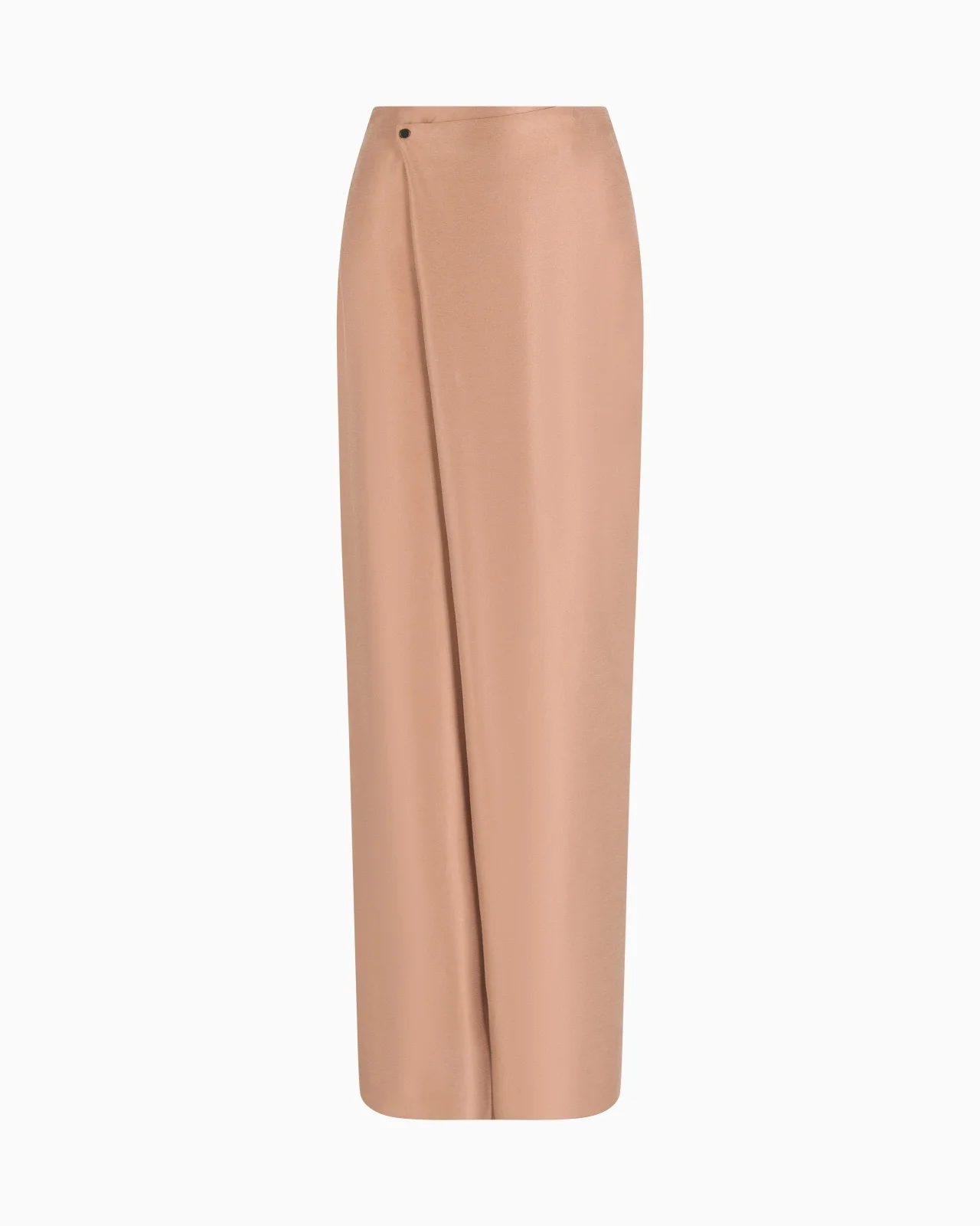 Elegant wrap skirt made of washed viscose and silk, featuring a diagonal closure with a visible button and slight gathering at the back. A slinky, elegant style available in a delicate clay hue that completes sophisticated looks teamed with blouses and jumpers from the collection. Wrap style Diagonal one-button closure Gathering at the centre back Two inseam pockets Unlined Length: 110 cm Made in Italy Product Code: GW000870TE13765U6090