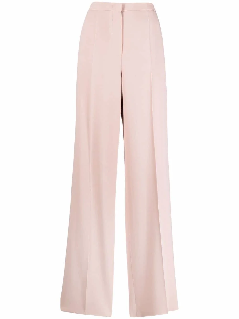 wide-leg trousers Giorgio Armani's expert Italian craftsmanship is evident in these tailored wide leg trousers from the brand's SS22 collection. Presented in a versatile pale pink hue, they feature a central pressed crease and concealed hook and zip fly closure. Made in Italy Composition Viscose 96%, Spandex/Elastane 4% SIZE & FIT Model measurements Height 5 ft 10 in(1.77 m) Bust/Chest 34.64 in(88 cm) Hips 35.43 in(90 cm) Waist 24.8 in(63 cm) FittingInformation This piece fits true to size. We recommend you get your regular size Designed to be fitted at the waist and hips, loose over the leg Made with a mid-weight stretch fabric