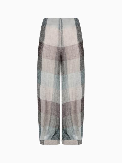 WIDE-LEG TROUSERS IN CHECKED BRUSHED LINEN