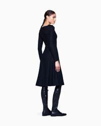 Elegant and refined dress with a flared skirt, highlighting and accentuating the silhouette. Made from wool jersey, it is embellished with epaulettes with a logo button. This sophisticated style can be worn for day or evening looks, simply by changing accessories. The piece is part of the New Normal selection, an offering that reinterprets the brand’s archive looks with a modern twist. Pieces in elongated and fluid shapes and with an androgynous flavour dress the feminine silhouette with elegance for day-to-night looks. This season it comes in a natural colour palette animated by a series of chevron motif and houndstooth shapes, a clear reinterpretation of pieces "stolen" from the male wardrobe with a feminine twist. Oval neckline Long sleeves Epaulettes detail with logo button Skirt flared at the knee Length from the waist: 64 cm Length from centre back: 108 cm Made in Italy Product Code: GW002158AF17762UC001
