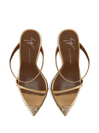 105mm Intriigo Jewelry sandals Highlights - Gold - Stiletto heel - Two straps - Pointed toe - Crystal embellishment - Leather upper Made in Italy Composition Sole: Leather 100% Outer: Leather 100% SIZE & FIT Measurement HEEL 4.13 in(10.5 cm)