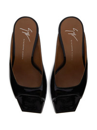 105mm leather heeled sandals Highlights - Black - Leather - Slip-on style - Square toe - Branded insole - Block heel Made in Italy Composition Lining: Leather 100% Sole: Leather 100%, Rubber 100% Outer: Patent Leather 100% SIZE & FIT Measurement HEEL 4.13 in(10.5 cm)
