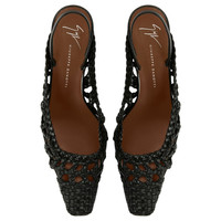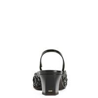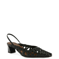 Product Details Slingback pumps in woven leather with square topline and toe, rear strap with elastic insert and chunky heel with metal stitch detail. - Black woven leather - 45 mm-high heel with light golden metal accessory - Brown leather sole with logo ORIGIN: ITALY COLOR: BLACK