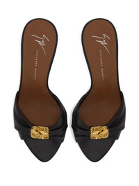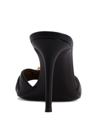90mm Cherie pleated sandals Highlights - Black - Leather - High stiletto heel - Pleated detailing - Open toe - Gold-tone plaque embellishment Made in Italy Composition Lining: Leather 100% Outer: Leather 100%, Metal 100% Sole: Leather 100%, Rubber 100% SIZE & FIT Measurement HEEL 3.54 in(9 cm)