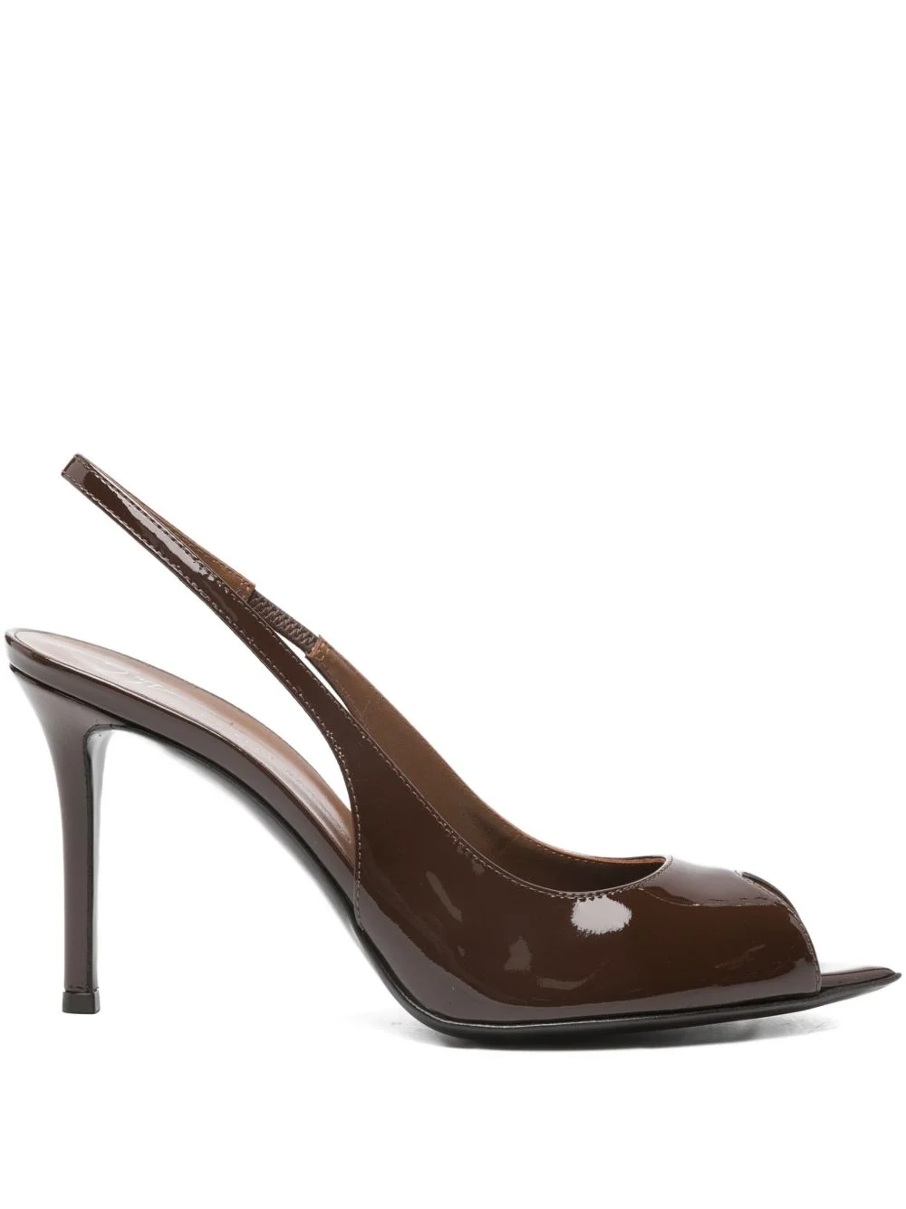 90mm Intriigo slingback peep-toe pumps Highlights - Brown - Patent leather - Slingback strap - Peep toe - Stiletto heel - Pointed toe Made in Italy Composition Outer: Patent Leather 100% Lining: Leather 100% Sole: Leather 100% SIZE & FIT Measurement HEEL 3.54 in(9 cm)