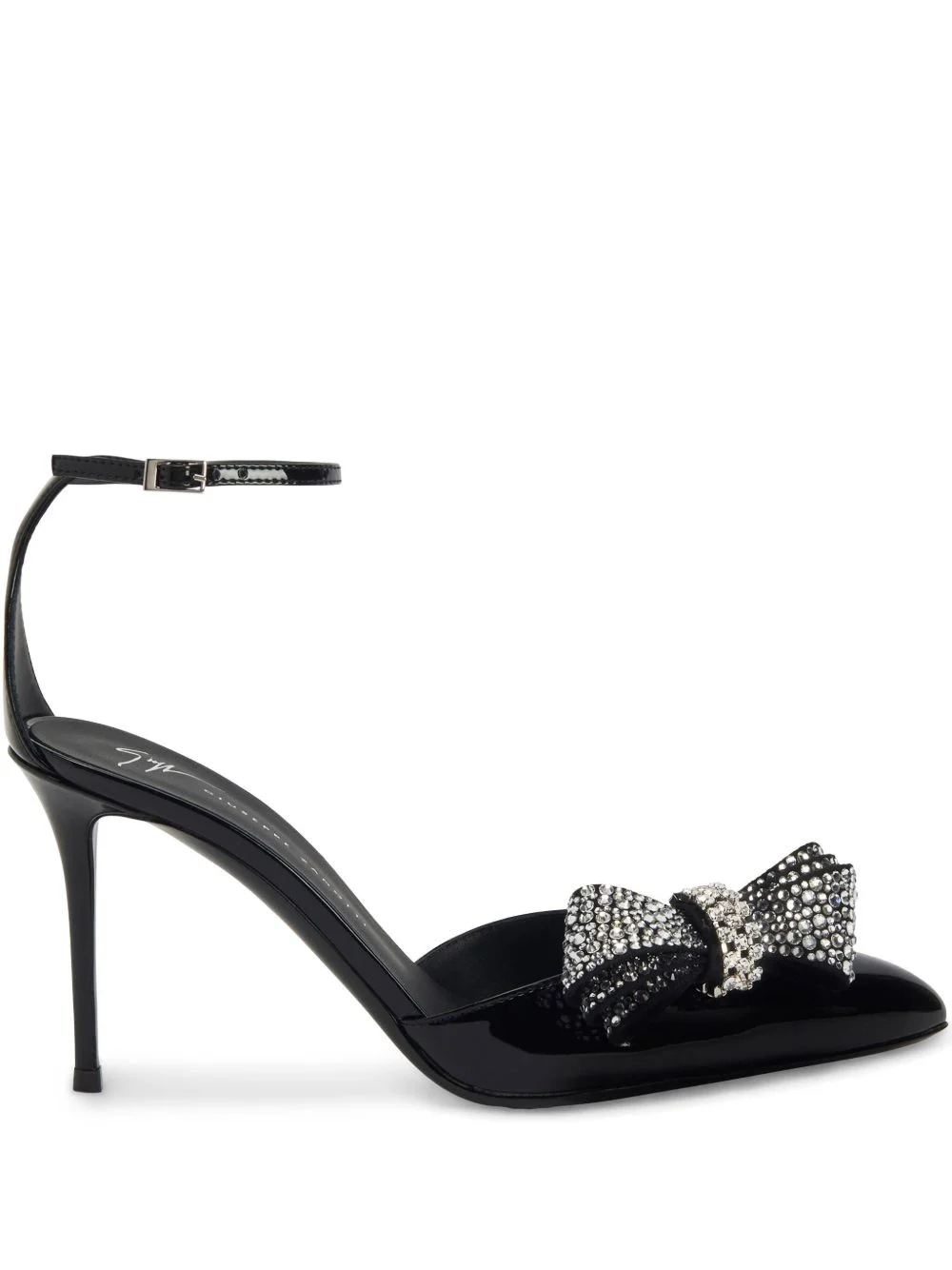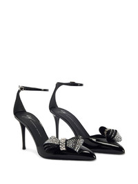 90mm Mahrtina pumps Highlights - Black - Buckle-fastening ankle strap - High stiletto heel - Crystal embellishment - Bow detailing Made in Italy Composition Outer: Fabric 100% Sole: Leather 100% Lining: Calf Leather 100% SIZE & FIT Measurement HEEL 3.54 in(9 cm)