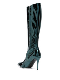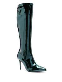 95mm pointed-toe leather boots Highlights - Dark green - Calf leather - High-shine finish - Pointed toe - Concealed side zip fastening - 95mm knee-high Made in Italy Composition Other fibres 100% SIZE & FIT Measurement CIRCUMFERENCE 14.17 in(36 cm) HEEL 3.74 in(9.5 cm) HEIGHT 15.74 in(40 cm)