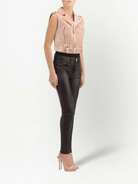Amelia Crystal velvet gilet pink velvet silver-tone hardware decorative zip detailing notched lapels off-centre front zip fastening sleeveless two side zip-fastening pockets belted hem cropped Made in Italy Composition Velvet 100%