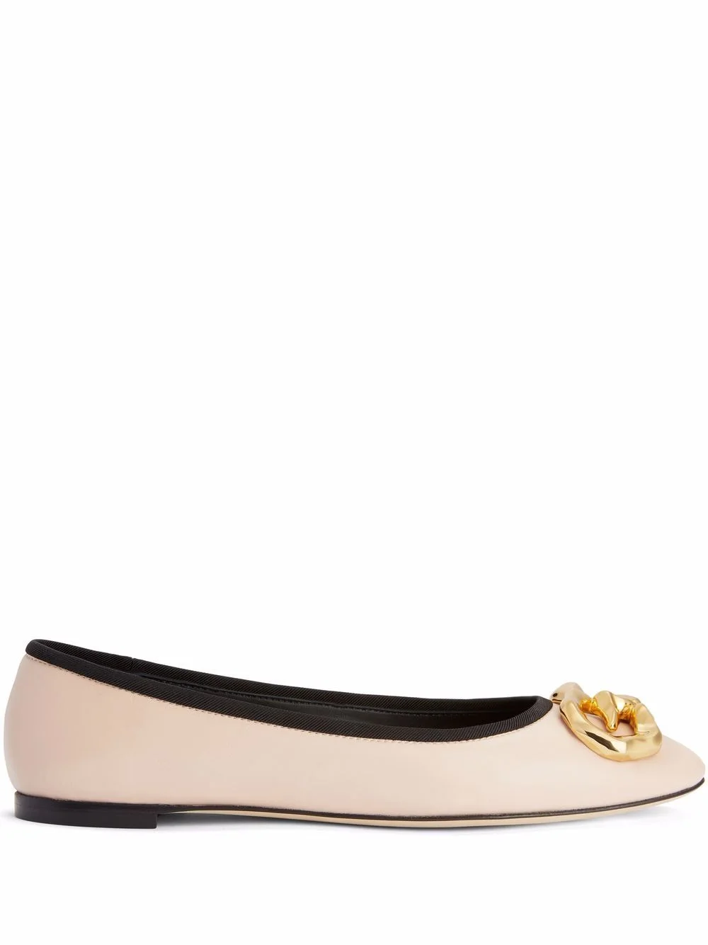 Amur ballerina shoes Giuseppe Zanotti puts its signature twist on these Amur ballerina shoes. Realised in a light-pink hue with a contrasting black trim, the pair are defined by the gold-tone sculpted monogram that sits on the toe. Made in Italy Composition Outer: Leather 100% Lining: Leather 100% Sole: Leather 100%