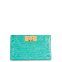 Product Details This clutch bag is crafted from crocodile-print leather and features a golden metal nut-shaped turn lock clasp, a golden metal shoulder strap and a black fabric inner lining with card slots. Black crocodile-print leather Golden metal nut-shaped turn lock clasp Golden metal chain shoulder strap Black fabric inner lining with card slots Measurements: 200 mm x 120 mm x 70 mm Made in Italy