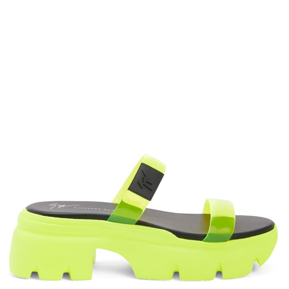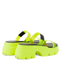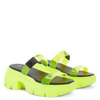 Product Details Mules crafted from black leather, featuring neon-yellow, transparent PVC straps, black rubberised metal 'Signature' hardware on the back straps and one-piece, neon-yellow rubber oversized soles. Neon-yellow PVC and black leather Black rubberised metal 'Signature' One-piece, neon-yellow rubber sole with logo Made in Italy