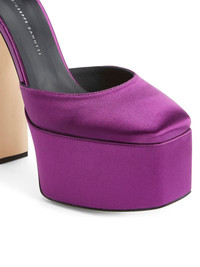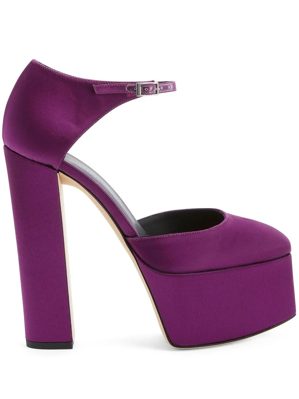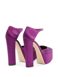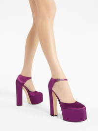 150mm Bebe platform pumps Highlights - Plum purple - Calf leather - Satin finish - Square toe - Buckle-fastening ankle strap - Platform sole - 150mm high block heel - Branded insole Made in Italy Composition Outer: Satin 100% Sole: Leather 100% Lining: Calf Leather 100%