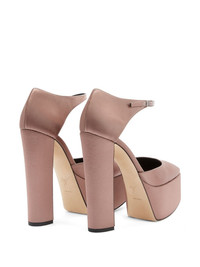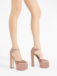 150mm Bebe platform pumps Highlights - Blush pink - Leather - Satin finish - Square toe - Buckle-fastening ankle strap - Platform sole - 150mm high block heel - Branded insole Made in Italy Composition Outer: Satin 100% Sole: Leather 100% SIZE & FIT Measurement HEEL 5.9 in(15 cm) PLATFORM 2.75 in(7 cm)