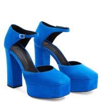 Product Details These sandals, crafted from cornflower-blue suede, feature a matching closed heel, an adjustable ankle strap with a silver metal buckle and matching covered chunky heels and platform. Cornflower-blue suede Adjustable strap with silver metal buckle 40 mm platform covered in cornflower-blue suede 40 mm heel covered in cornflower-blue suede Leather sole with logo Made in Italy