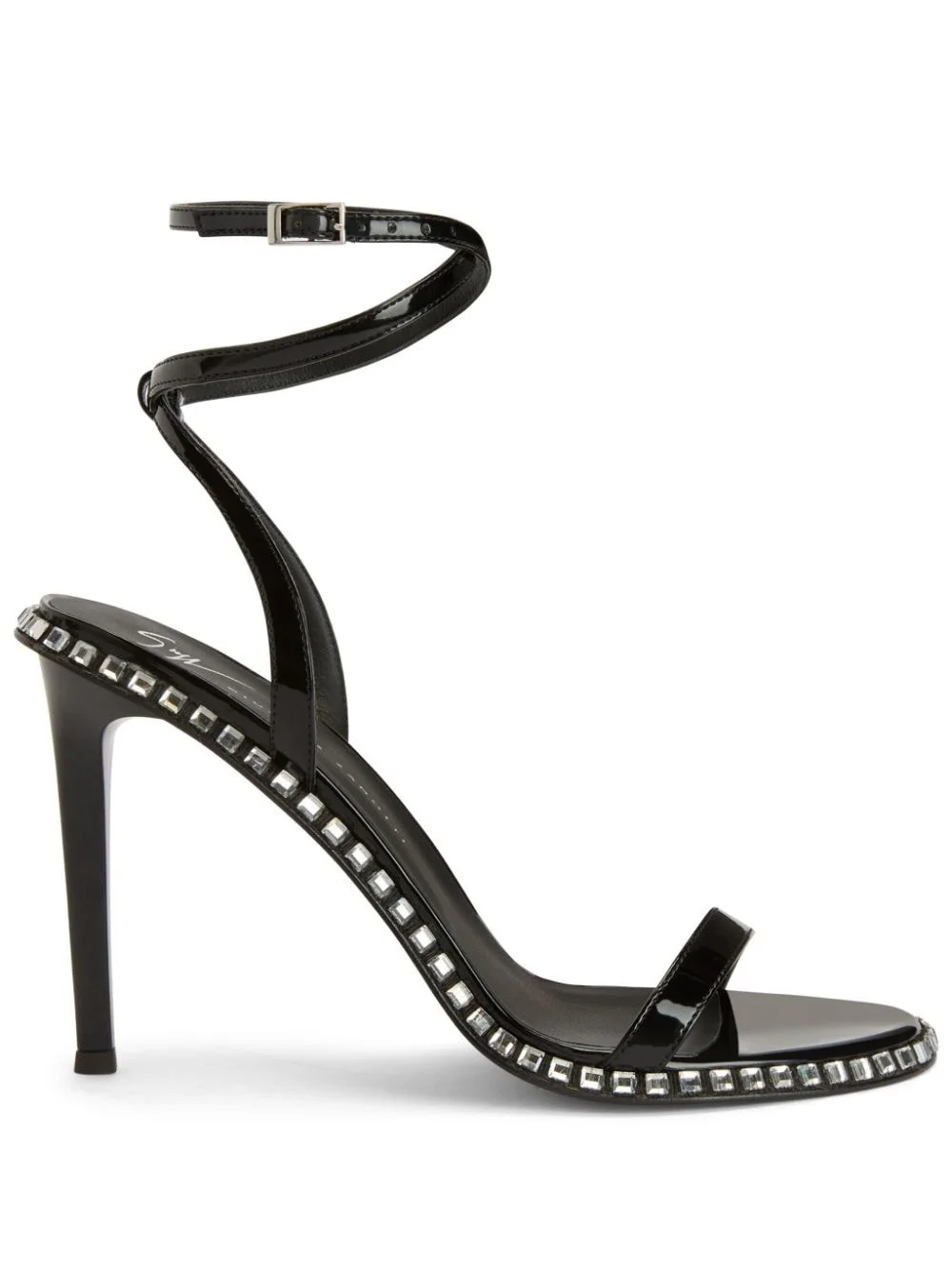 Bellatriks 105mm leather sandals Highlights - Black - Calf leather - Crystal embellishment - Wraparound style - Almond open toe - Buckle-fastening ankle strap - Branded leather insole - High heel Made in Italy Composition Sole: Leather 100% Outer: Patent Calf Leather 100% Lining: Calf Leather 100% SIZE & FIT Measurement CIRCUMFERENCE 8.66 in(22 cm) HEEL 4.33 in(11 cm) HEIGHT 2.75 in(7 cm) Sole height 0.39 in(1 cm)
