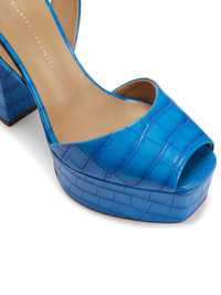 120mm Betty platform sandals Highlights - Indigo blue - Faux leather - Embossed crocodile effect - Square open toe - Ankle strap - Buckle fastening - 120mm high block heel - Leather sole Made in Italy Composition Outer: Fabric 100% Lining: Fabric 100% Sole: Leather 100%