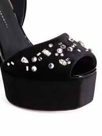 120mm Betty platform sandals Highlights - Black - Crystal embellishment - Peep toe - Branded leather insole - Buckle-fastening ankle strap - High block heel Made in Italy Composition Suede 100%