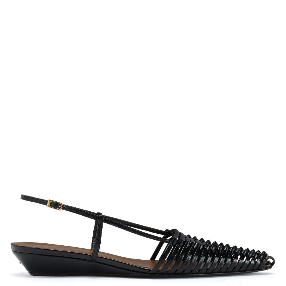 Product Details Slingback ballet flats with woven leather stripes, square toe and topline, and wedge. - black leather - 25 mm wedge - gold-coloured metal buckle - brown leather insole with logo - leather sole ORIGIN: ITALY COLOR: BLACK